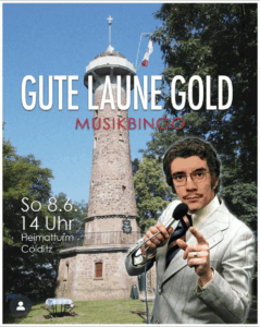 🎵 Wir spielen wieder Musik-Bingo! Diesmal in Colditz am Heimatturm.